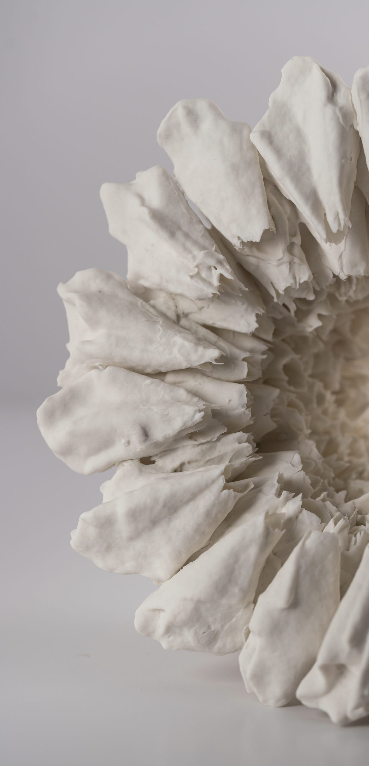 Elle explore différentes matières: l’argile, la porcelaine papier, les terres sigillées. Ses sources d’inspiration sont les végétaux et les fonds marins. Une multitude des petites formes organiques composent ses sculptures. L’ensemble de son travail dégage une grande impression de sérénité.