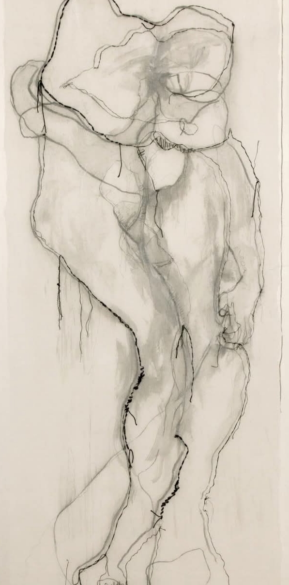 Scénographe et artiste plasticienne, elle présente des sculptures textiles extérieures qui vont rythmer la drève et le jardin. Le mouvement des hommes et des femmes est l’énergie qui stimule ses compositions de corps dans l’espace de la toile et du papier grand format.
